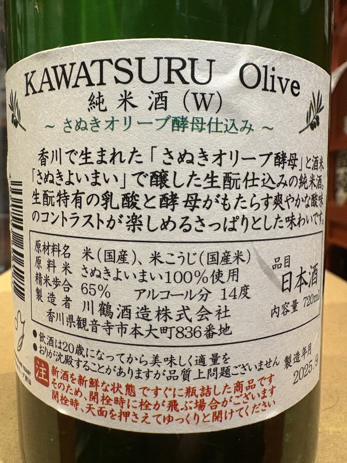 KAWATSURU Olive 純米 生酛仕込 R6BY 720ml