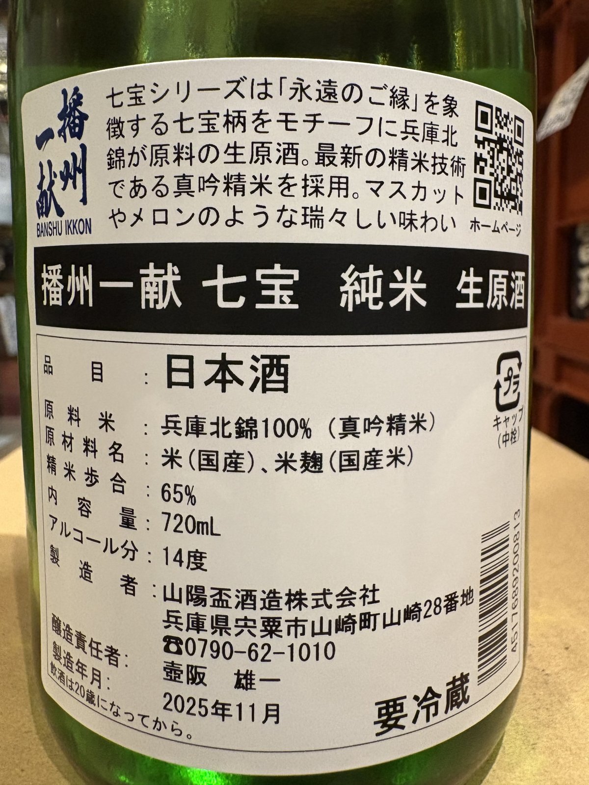 播州一献 【七宝】純米 生原酒 R7BY(要冷蔵) 720ml