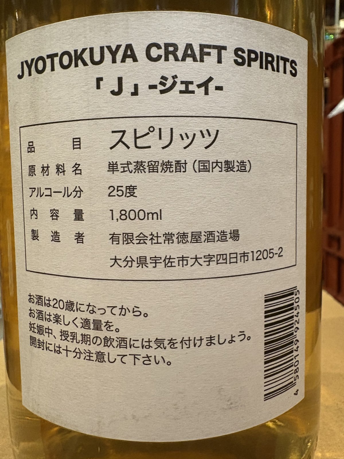 JYOTOKUYA CRAFT SPIRITS 『J』-ジェイ- 25度 1.8L